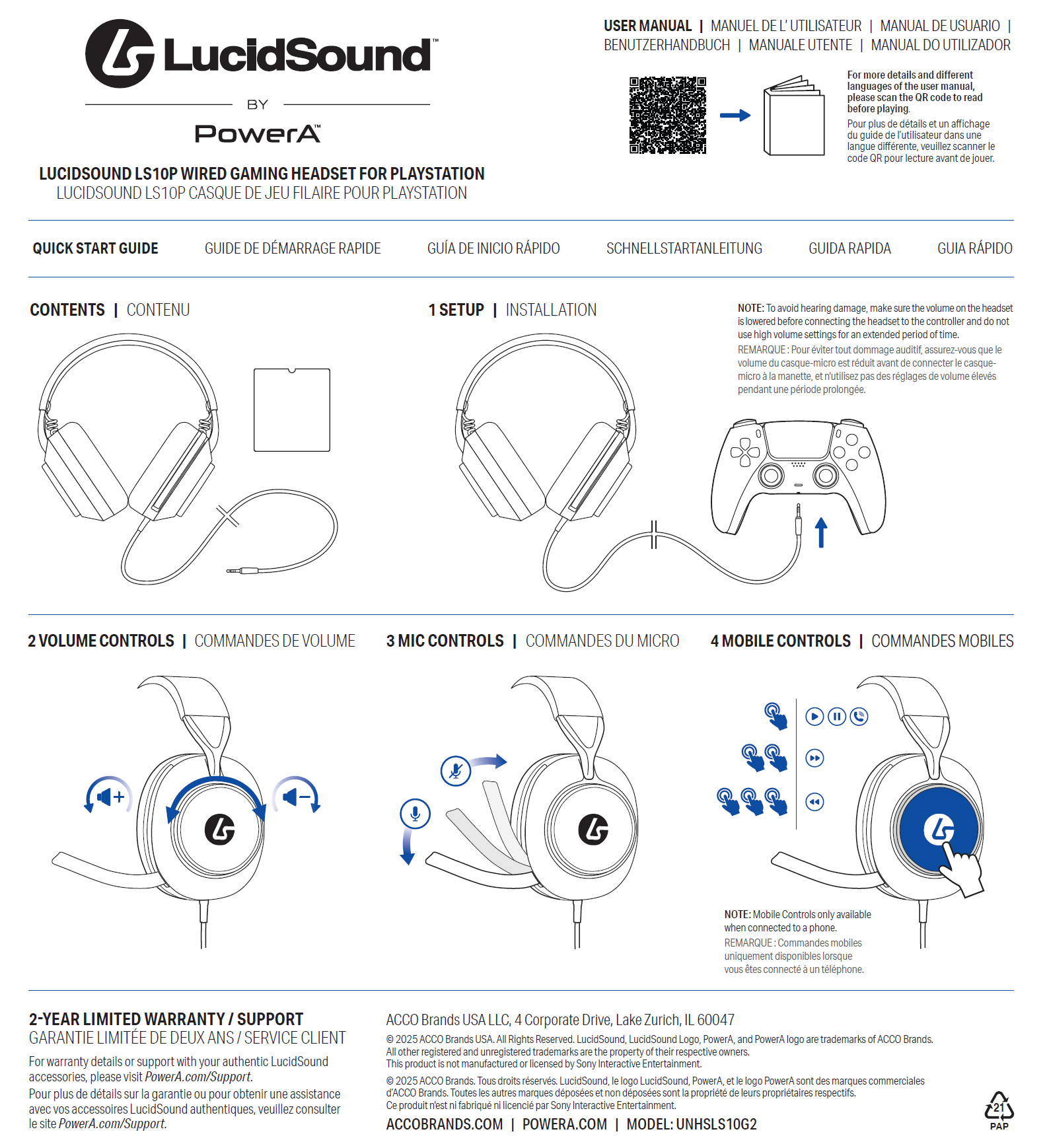 LucidSound LS10P Gen 2 Wired Gaming Headset for PlayStation Quick Start Guide