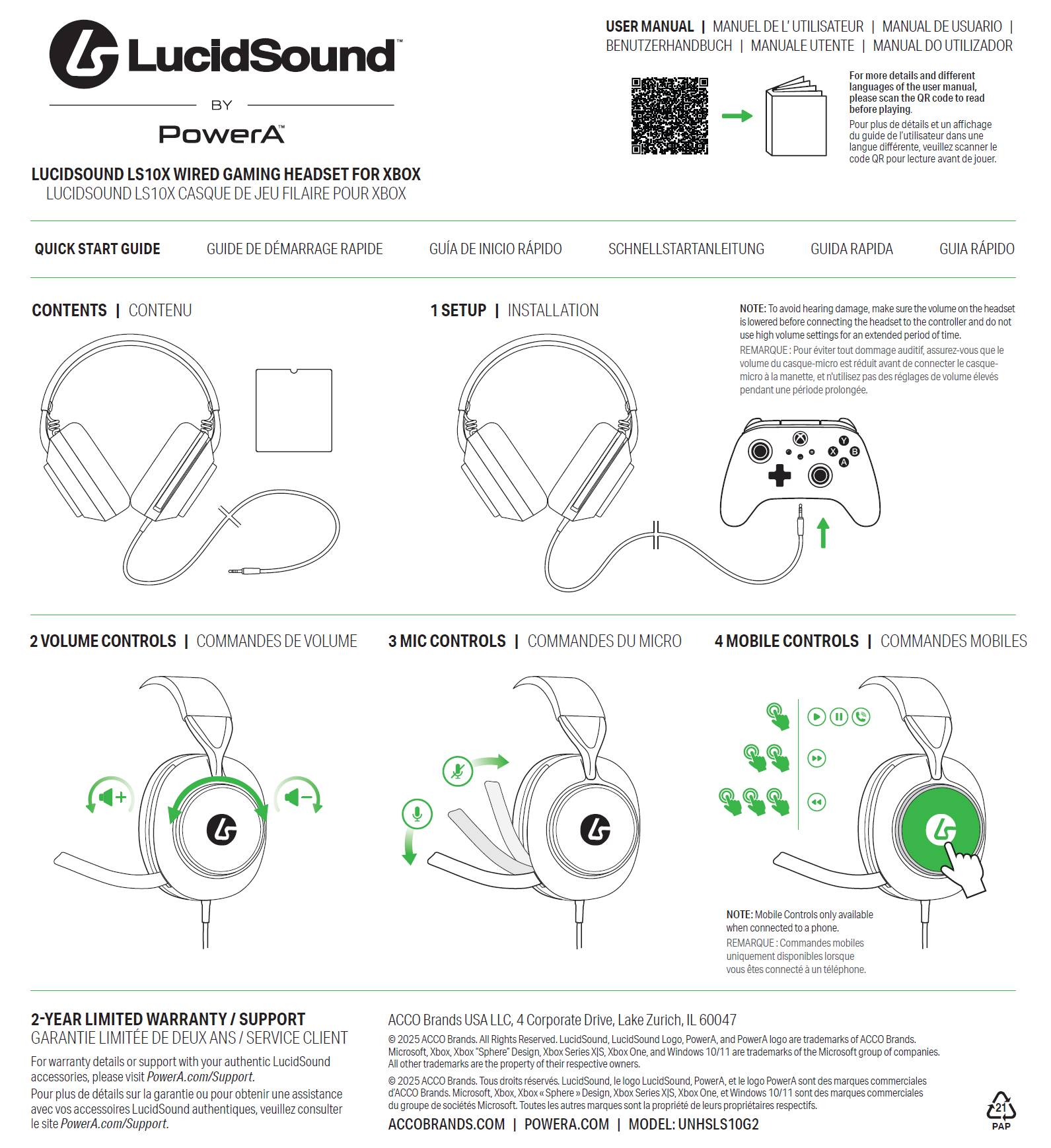 LucidSound LS10X Gen 2 Wired Gaming Headset for Xbox Series X|S Quick Start Guide